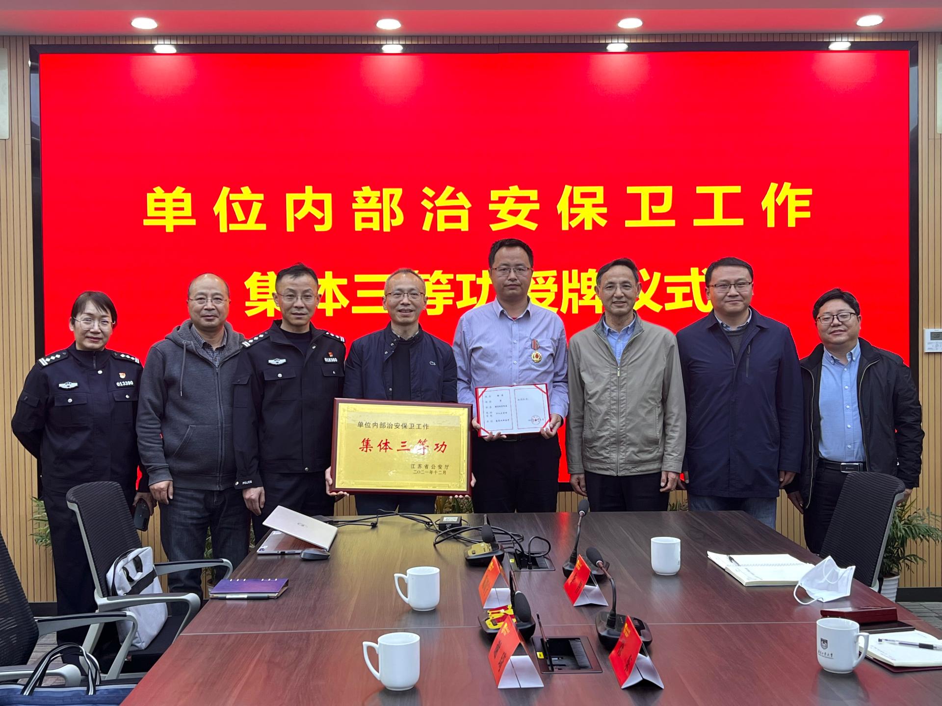 近日,江苏省公安厅下发文件,对2021年全省单位内部治安保卫工作先进集体和先进个人进行表彰,我校保卫处荣立集体三等功;南京市公安局下发文件,对2021年度全市内保系统保卫组织先进集体和先进个人进行表彰,我校保卫处副处长徐东获个人三等功。