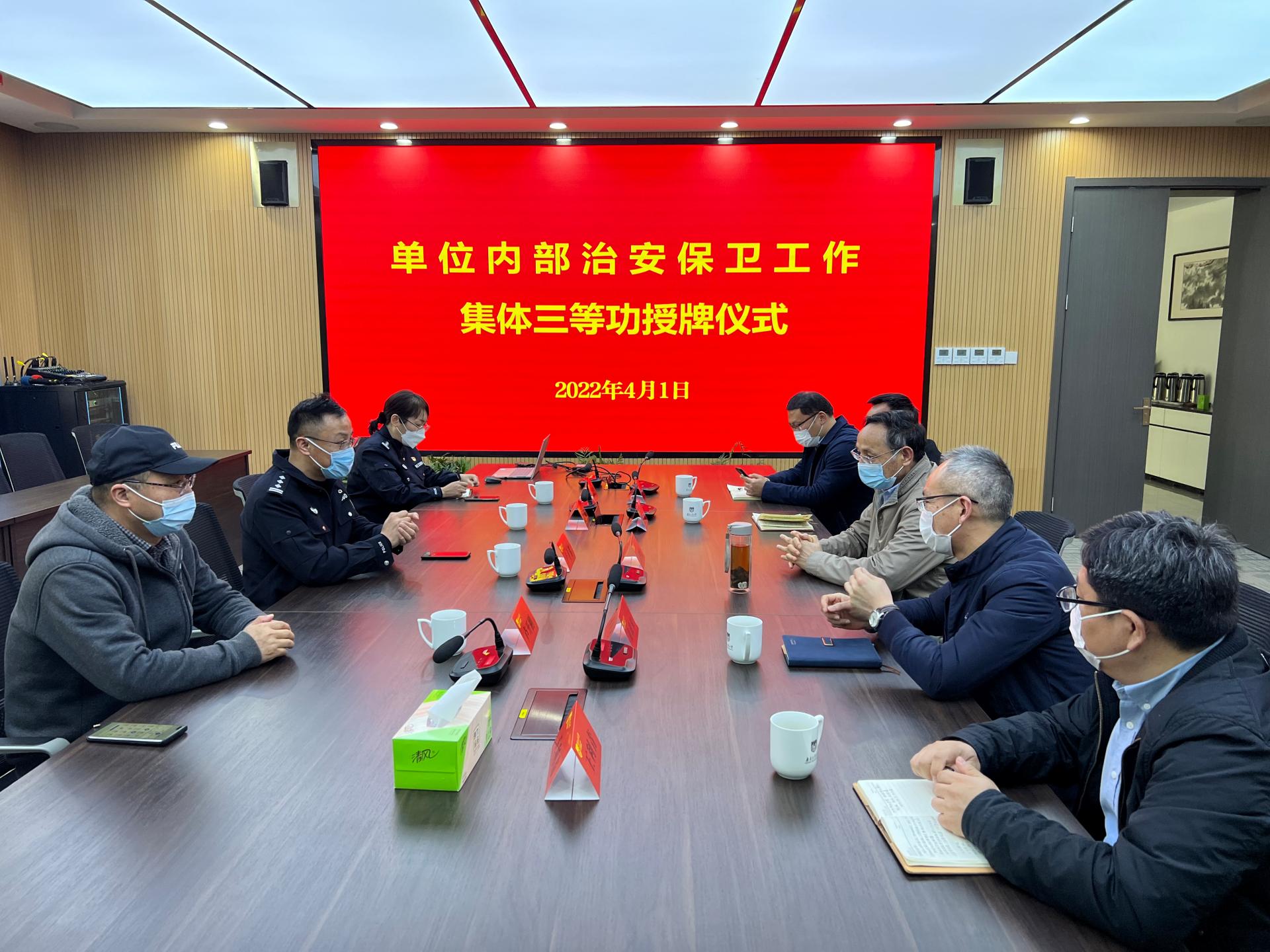 4月1日下午,南京市公安局内保支队副支队长卢才勇一行来校为获奖集体和个人颁奖,校党委副书记吴胜红出席授牌仪式。