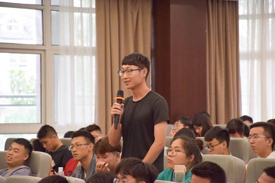 第二个模块中,董彦成先生指出了目前大学生的三个选择方向,即“考研”、“就业”、“创业”,并就“就业”与学生展开了互动交流,现场气氛十分热烈。同学们认真听讲、积极提问。