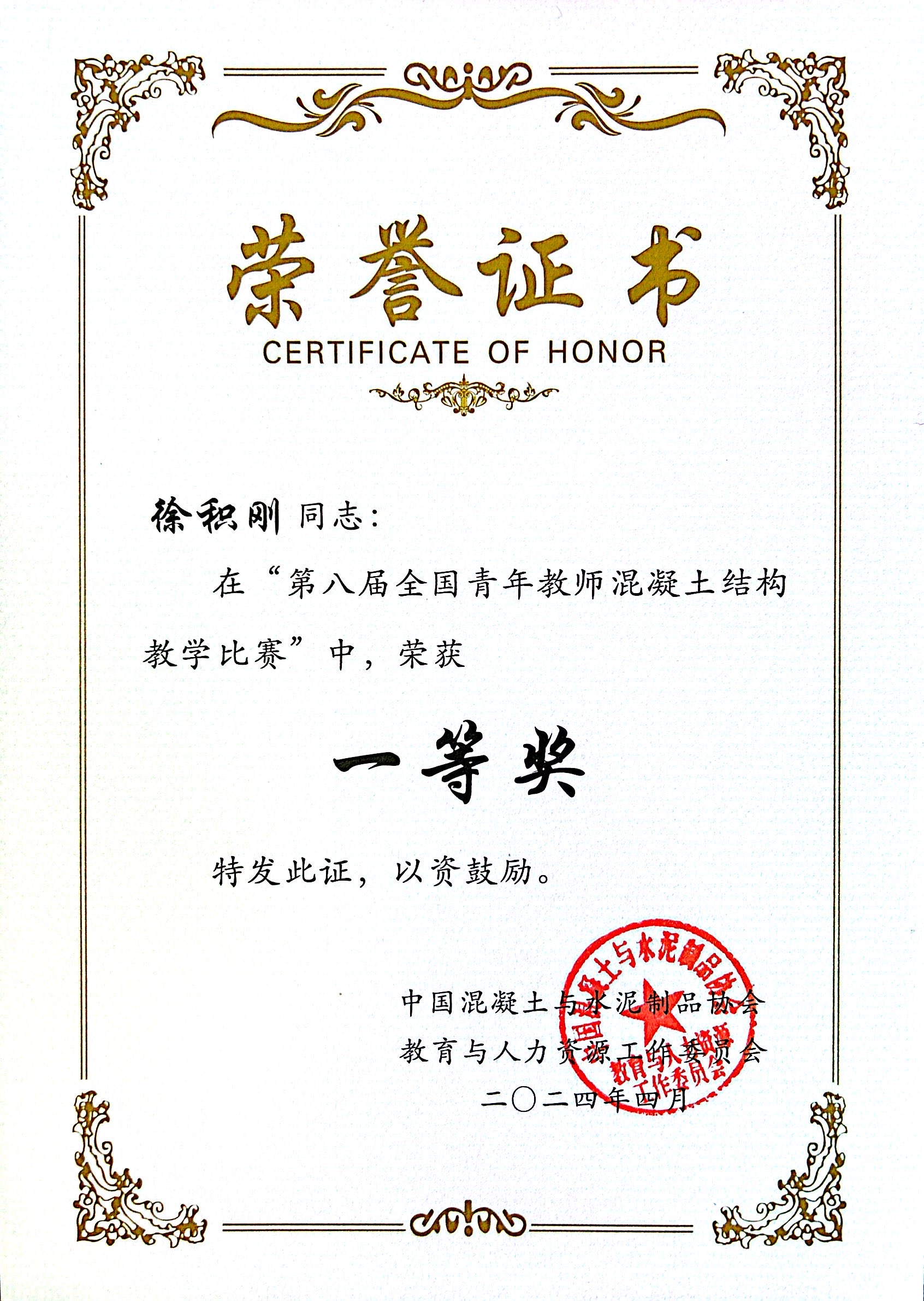 4月19日至4月21日,由中国土木工程学会教育工作委员会、教育部高等学校土木工程专业教指委、中国混凝土与水泥制品协会教育与人力资源工作委员会联合主办的第八届全国青年教师混凝土结构教学比赛在合肥工业大学举行。土木工程学院青年教师徐积刚参加了此次比赛并荣获一等奖(最高等次),实现了学院教师在该项比赛上的成绩突破,充分展现了学院青年教师扎实的教学基本功和优异的教学能力。