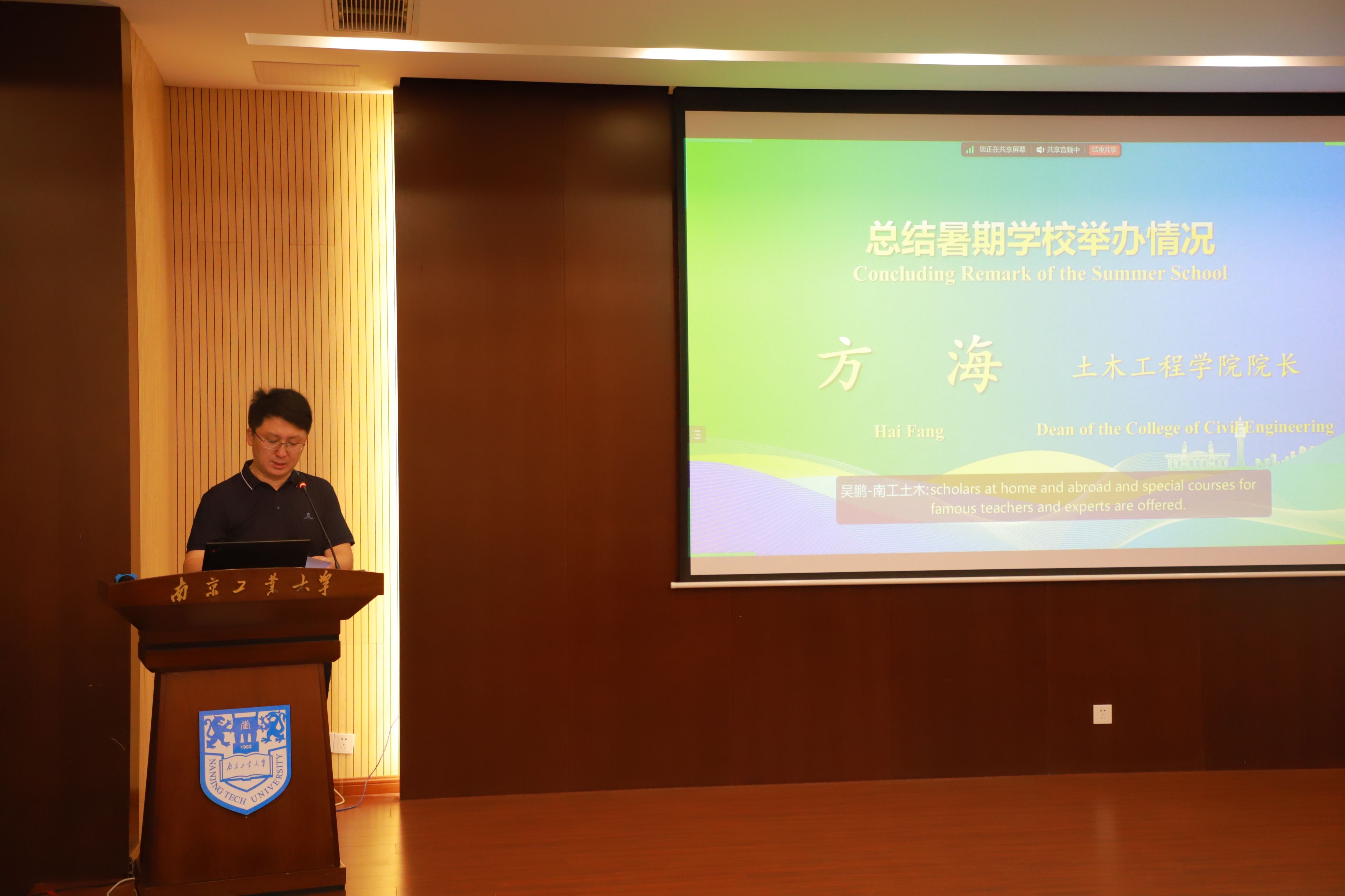 土木工程学院院长方海从暑期学校总体情况、取得成效与各方反映、总结与祝愿等几个方面总结了本次暑期学校的举办情况。总结指出,本次暑期学校精心策划了聆听业界前沿报告、品味精品特色课程、沉浸体验文化盛宴、身临实践工程一线、激发创新思维火花、共谋土木工程数智化发展蓝图等一系列活动,不仅让学员们深刻体验到了学科前沿的脉动,有效拓宽了研究视野,更让学员们在思想碰撞与交流中,深刻领略了中国文化的独特魅力,实现了个人学术与文化的双重飞跃。