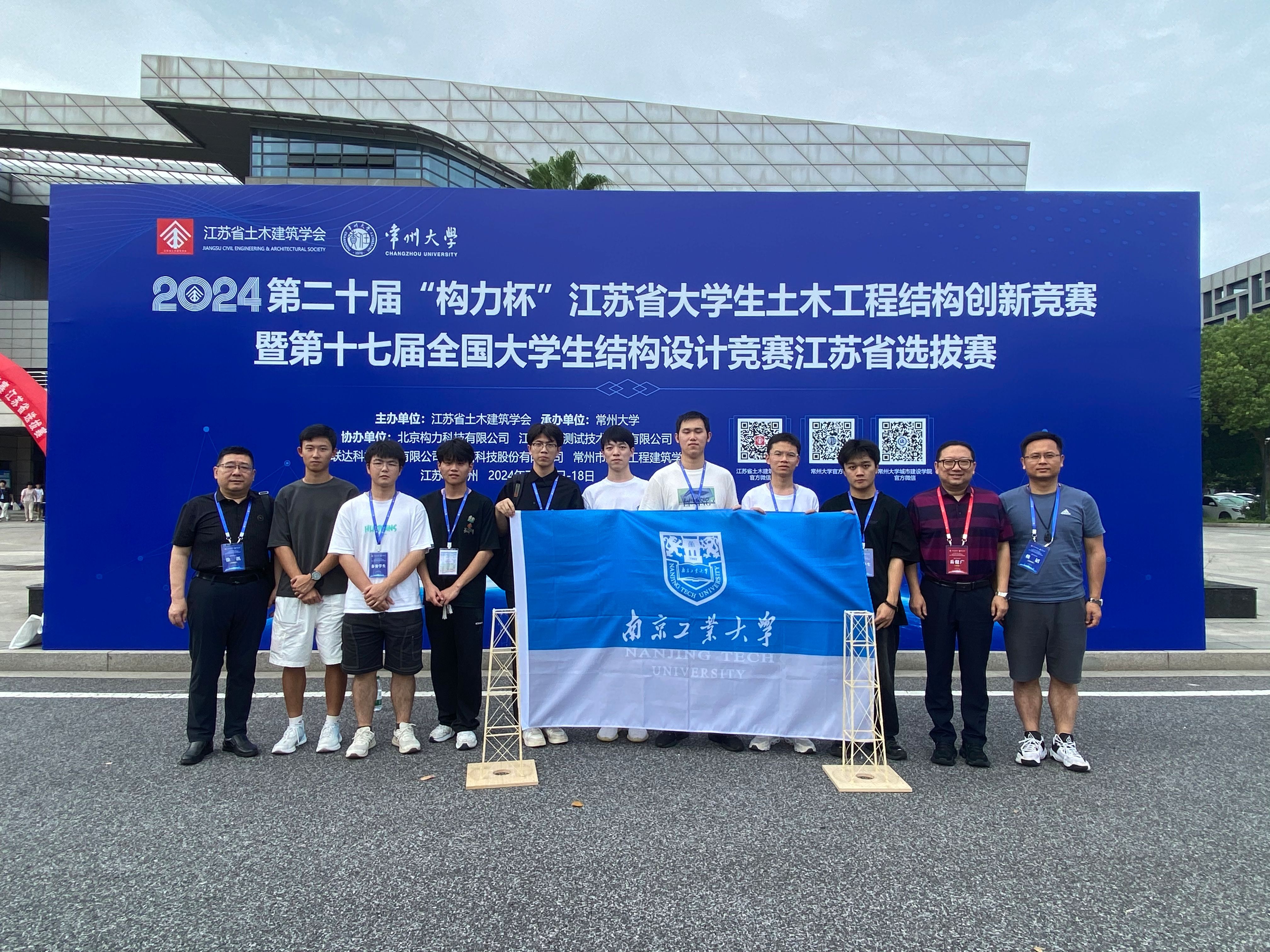 近日,第二十届“构力杯”江苏省大学生土木工程结构创新竞赛暨第十七届全国大学生结构设计竞赛江苏分区赛在江苏常州大学举办。比赛分为模型加载组和模型展示组两个模块,吸引来自东南大学等27所高校,总共340余名师生参加。本次比赛岳健广副院长作为专家评委,徐汛老师带队,赖韬老师、孙小鸾老师、李威威老师、宋玉鹏老师、张昊老师共同指导完成。