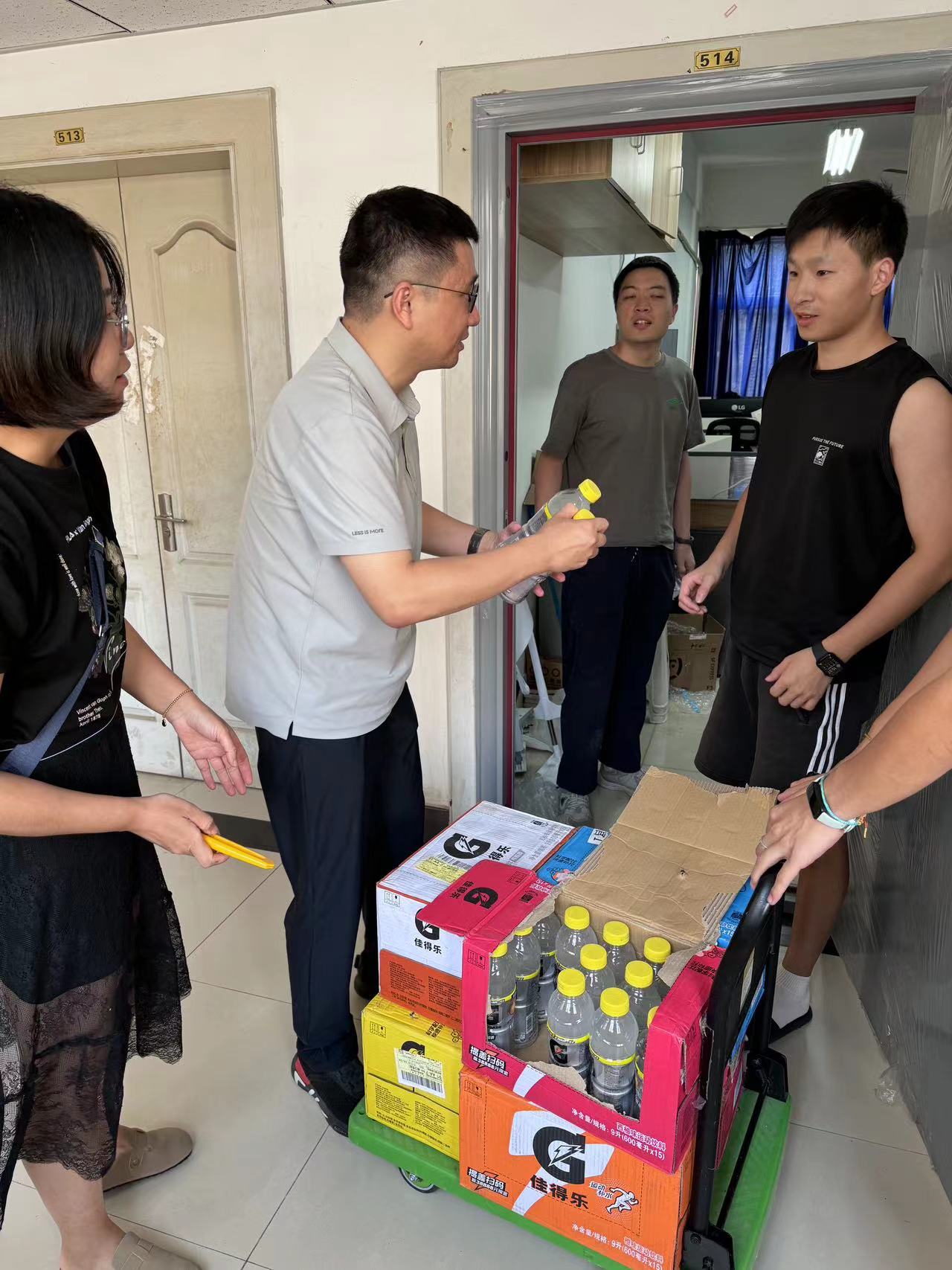 为进一步落实暑期留校学生的教育管理服务工作,了解暑期留校学生的思想学习生活情况,保障学生考研复习、科研工作、学科竞赛等工作有序开展。8月16日下午,土木工程学院(分管学生工作)副院长陈鑫,毕业班辅导员谢璐璐、姜小雨,研究生辅导员汤丽娟走进仁智楼考研自习教室、学生宿舍和地坤楼研究生工作室看望慰问留校学生,并代表学院为留校学生送上解暑饮料、清凉茶、草木花露水、香皂、冰凉贴、手持小风扇、蚊不叮、毛巾等防暑降温物资。