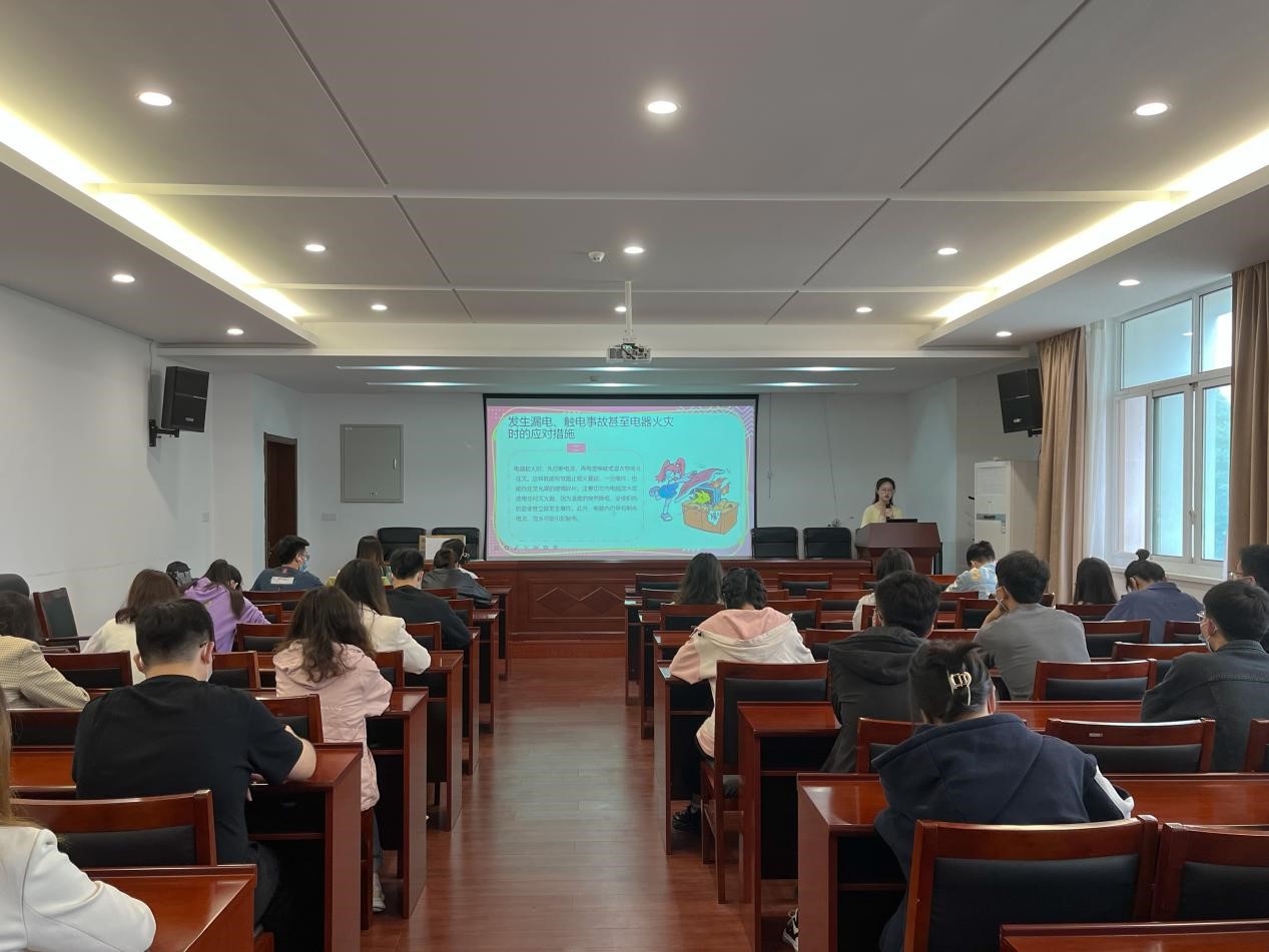 本次主题活动分为三个环节,首先工作人员组织参与者将提前准备好的废旧电器有序投入回收箱。随后由院研会新宣部成员陈雅婷同学讲解安全用电知识,从触电的危害、触电的方式、校园内的用电安全、应急处理四个方面展开讲述,提醒同学们树牢“安全第一”的意识,将安全与环保理念深入人心。最后在工作人员的组织下,参与人员现场随机抽取试题,题目紧贴本次活动的主题,以盆栽绿植作为答题优异者的奖励,同学们都踊跃答题,现场气氛十分活跃。