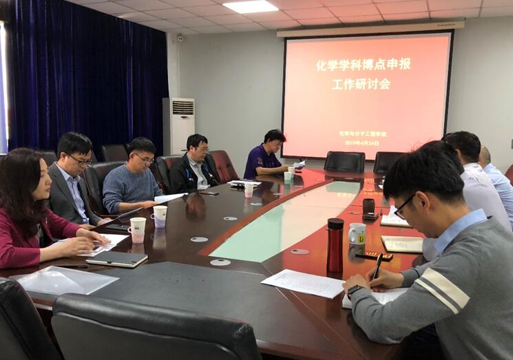 4月24日下午,学院在笃行楼316会议室召开了学科建设和化学一级博士点申报工作研讨会。会议由院长杨文忠教授主持,院领导班子、学科方向带头人和骨干教师罗德平教授、吴宇平教授、霍峰蔚教授、任小明教授、景苏教授、陈虹宇教授参会讨论。会议首先由副院长陈晓君教授对化学一级硕士点建设现状进行了汇报,接着对标博点申报条件,就人才队伍、方向设置、成员构成、科研成果、人才培养、平台建设等方面进行了详细地数据比对和分析。