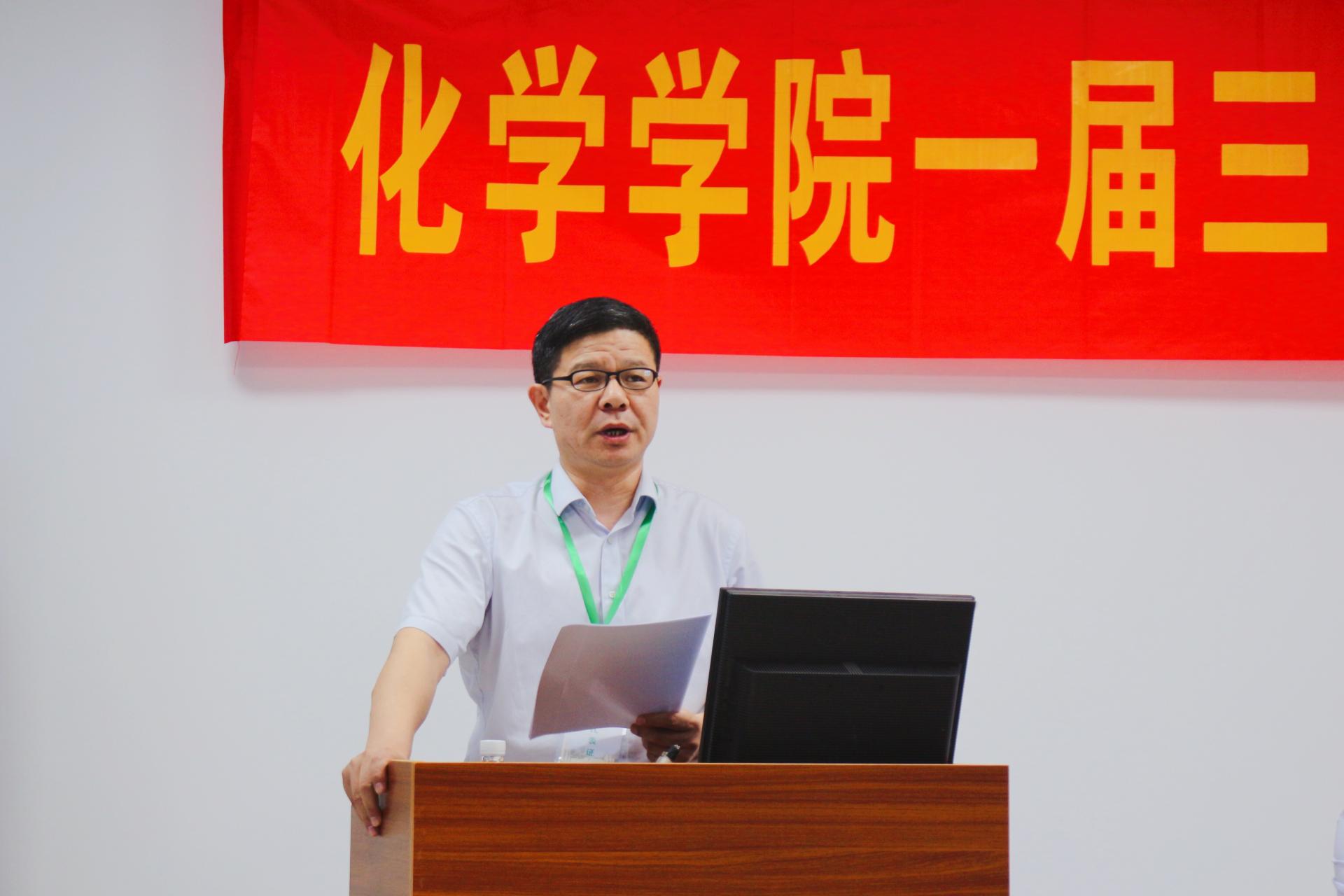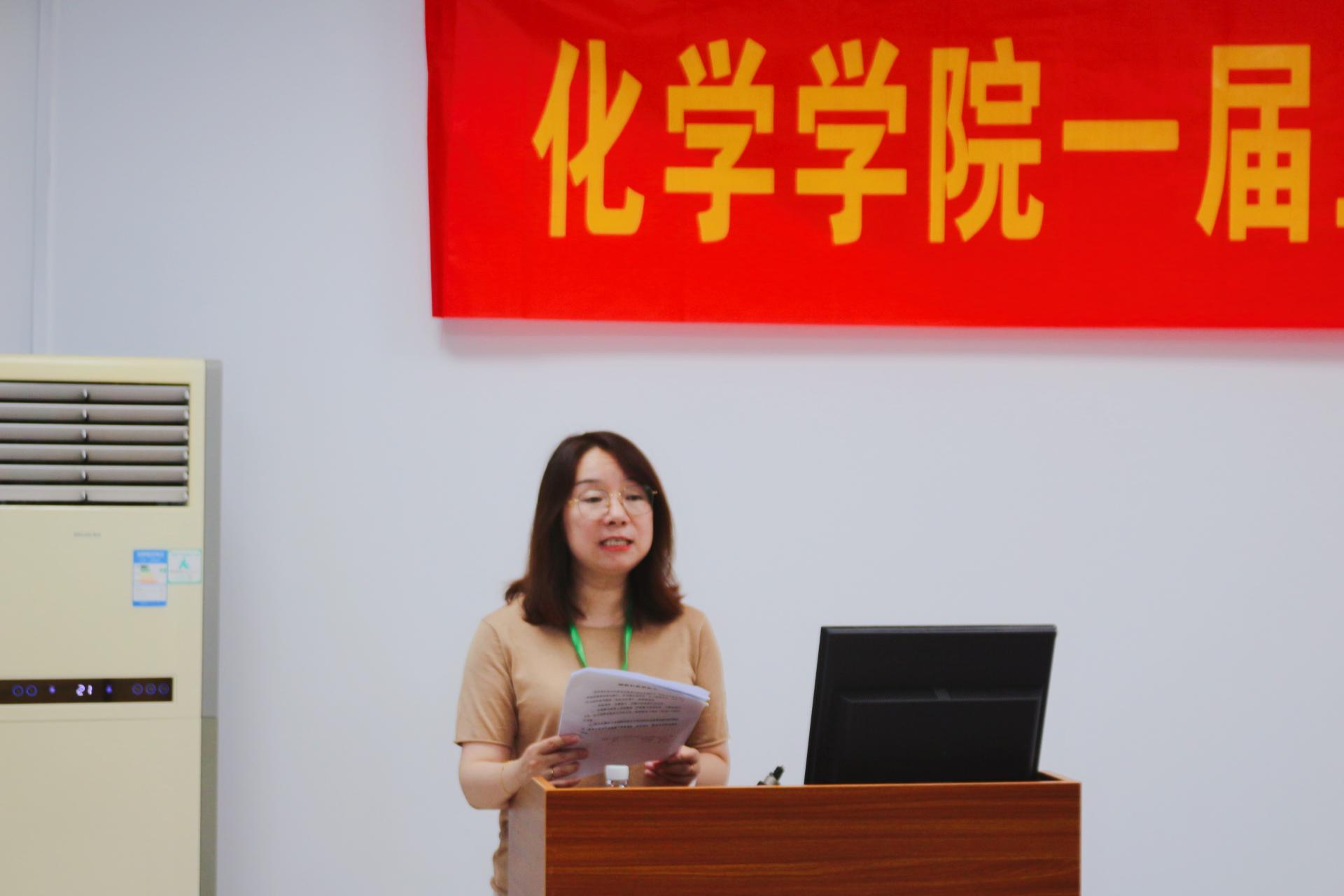 校工会副主席秦瑜为学院两代会的召开致贺词。