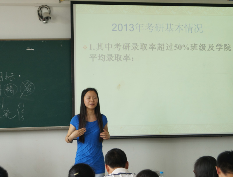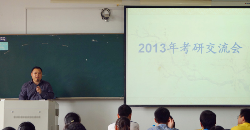 会议伊始,考宏涛老师给大家分析了近年来的考研形势,向将参与2014年考研的学生发出号召,鼓励大家积极考研,为心中的理想积极奋斗。