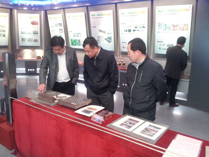 西北有色金属研究院副总工程师兼科研处处长赵永庆陪同沈晓冬院长、吕忆农书记参观产品陈列室 |