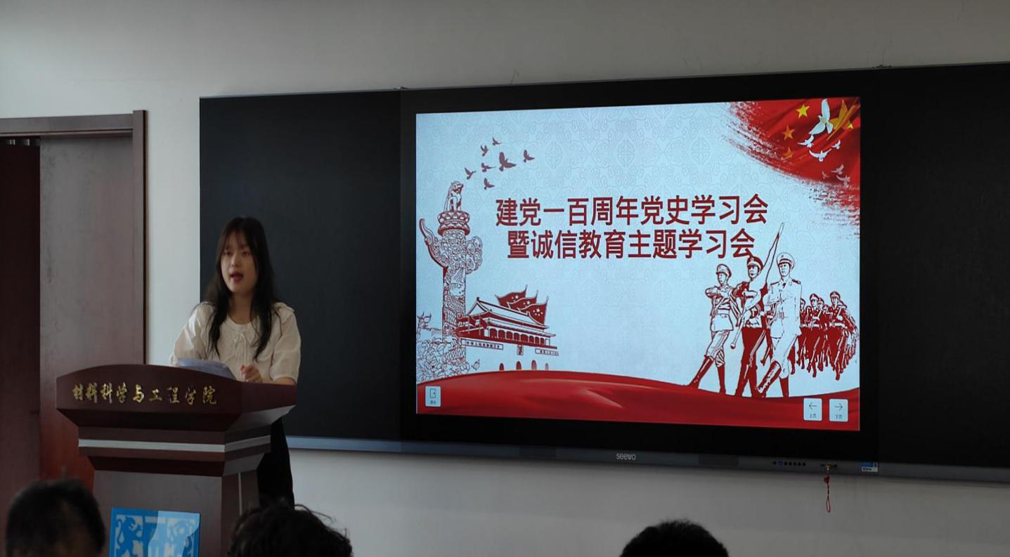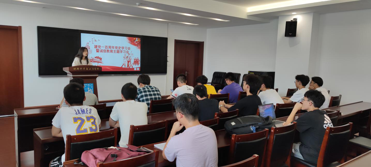 2021年6月4日下午,材料科学与工程学院组织开展了建党一百周年党史学习会暨诚信教育主题学习会。材料学院辅导员吕心语及2020级本科生代表参加了此次学习会。