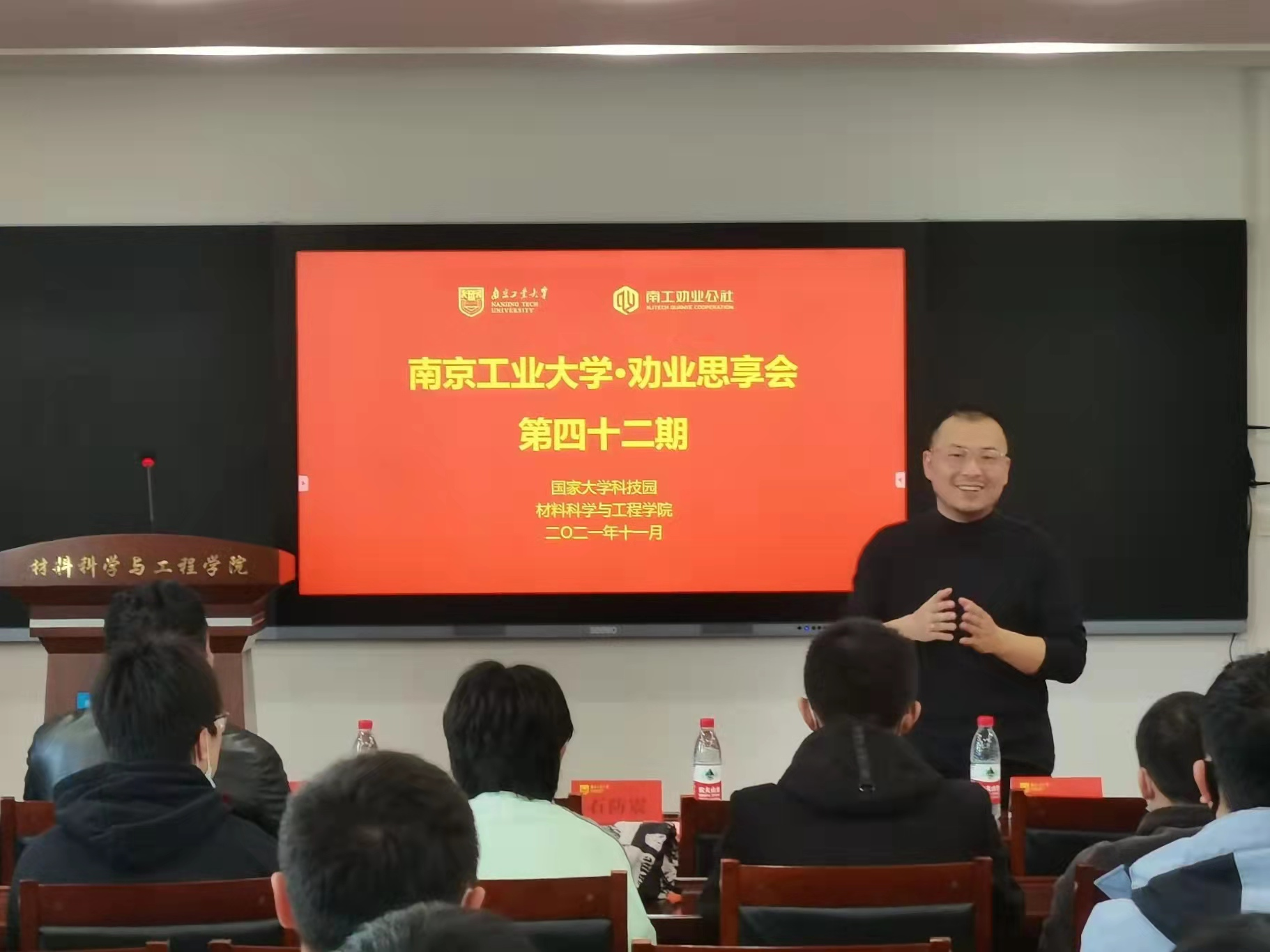 11月26日,由大学科技园管理办公室、材料科学与工程学院主办的南工劝业思享会第42期活动在润德楼B511举行。常州妙通贸易有限公司总经理、校友鲁聪、材料学院党委副书记石防震、大学科技园管理办公室和技术转移中心副主任张宁、大学生创业中心办公室主任刘越男、大学生创业中心办公室主管徐艳、材料学院团委书记颜文出席活动。活动由徐艳主管主持。