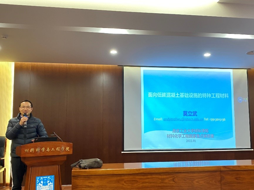 首先,莫立武教授深刻剖析了学院开展学术交流活动的目的;随后,作了主题为“面向低碳混凝土基础设施的特种工程材料”的报告,从“碳达峰,碳中和”理念出发,提出要保证建筑及工程质量。最后,介绍了自己所在科研团队的相关研究成果及工程应用情况。