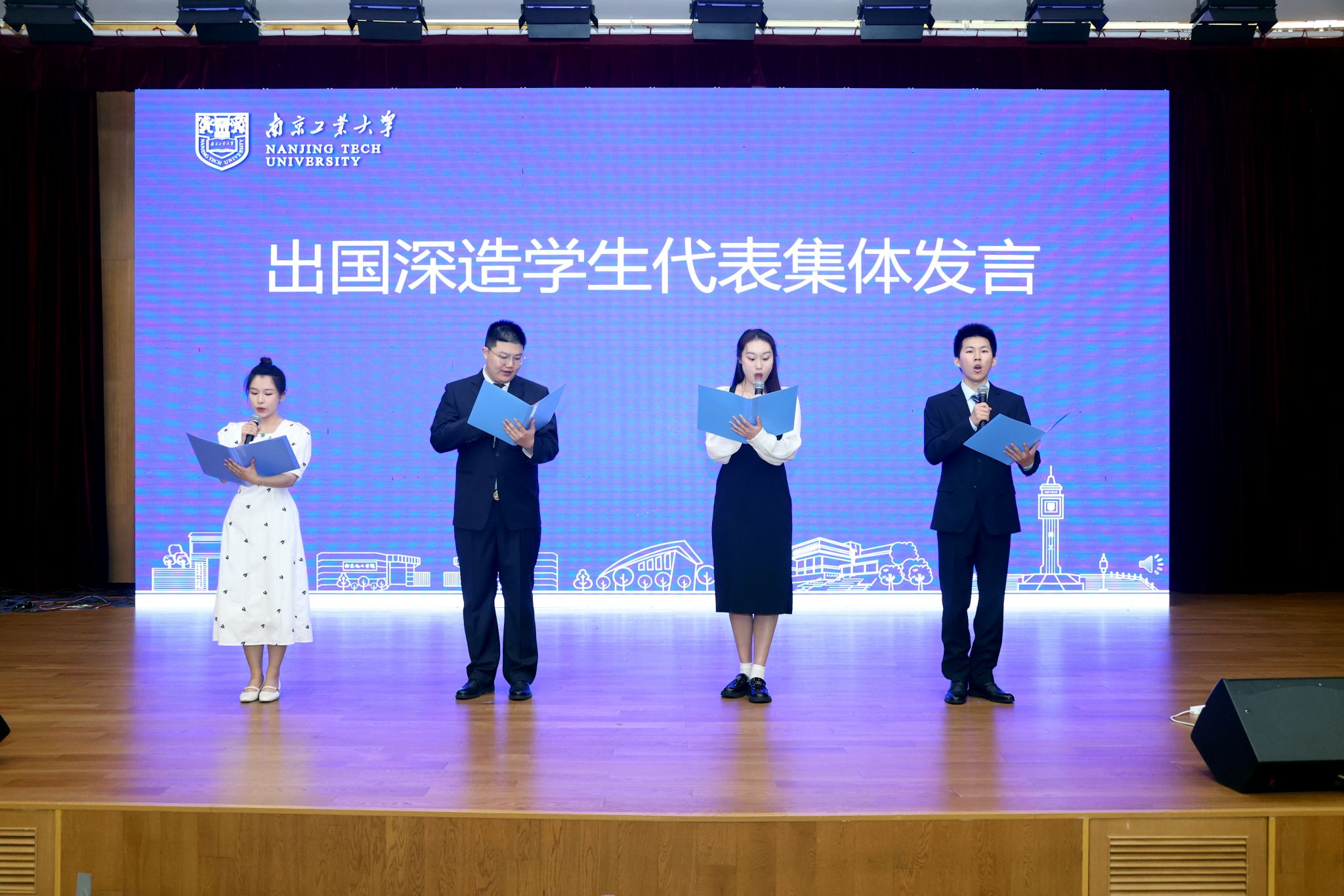 大会上,海外教育学院党委书记万永敏老师讲话,副院长朱丹老师介绍了出国深造学生同学会组建情况。教师代表谢宁昌老师、家长代表章雪龙先生、校友代表侯宇宸先后发言。4名出国深造学生代表集体发言,感恩奋进、立志报国。