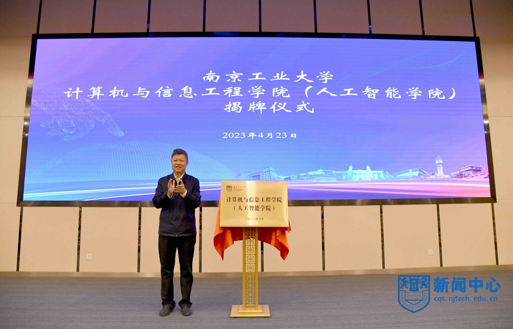 4月23日上午,计算机与信息工程学院(人工智能学院)揭牌仪式暨高质量发展研讨会在江浦校区弘毅楼五楼报告厅举行。校党委书记芮鸿岩,党委常委、副校长郭凯出席仪式。仪式由学院党委书记高辉庆主持。
