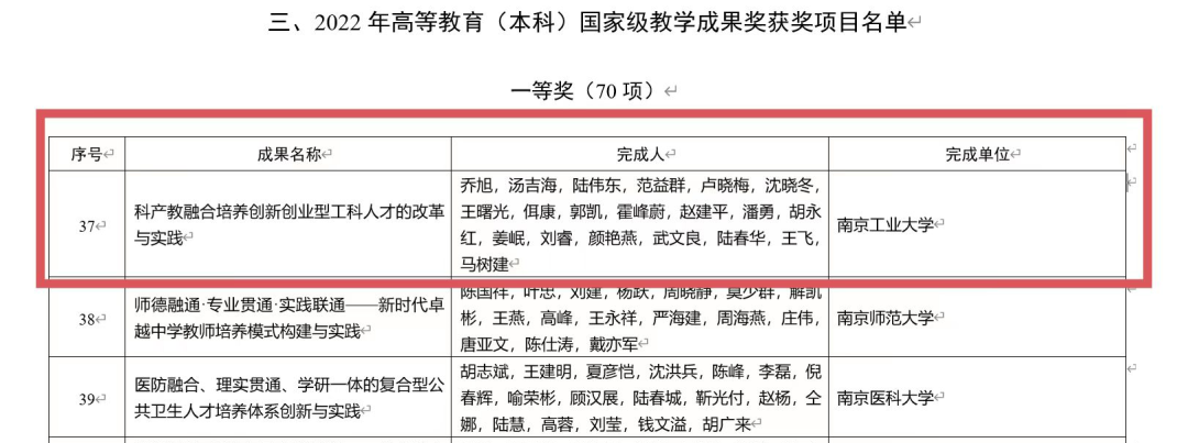 近日,教育部公布了2022年高等教育国家级教学成果奖获奖名单。我校乔旭教授领衔主持的教学成果《科产教融合培养创新创业型工科人才的改革与实践》喜获高等教育(本科)国家级教学成果奖一等奖。