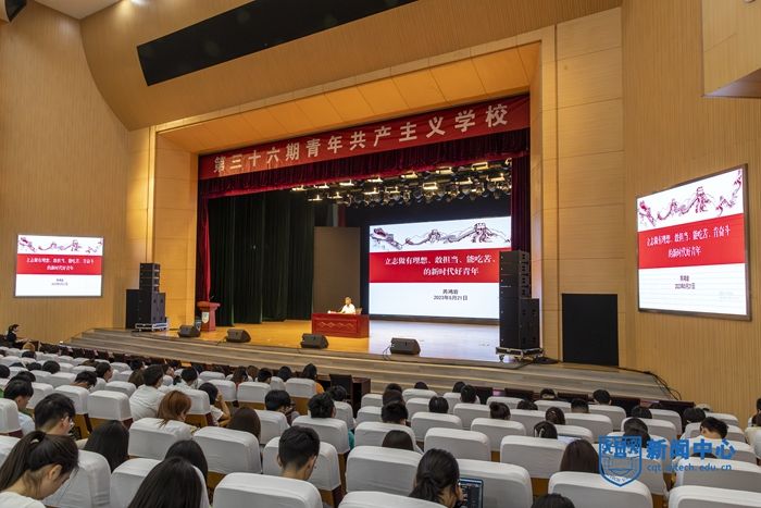 5月21日上午,第三十六期青年共产主义学校暨首场专题培训在江浦校区博雅堂举行。校党委书记芮鸿岩出席并作首场理论报告。