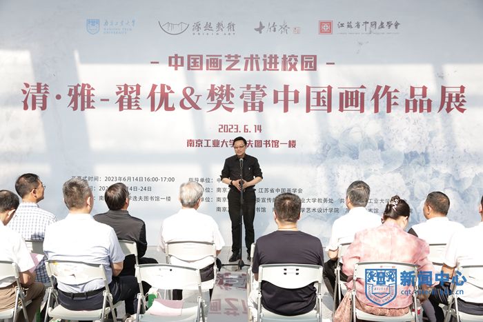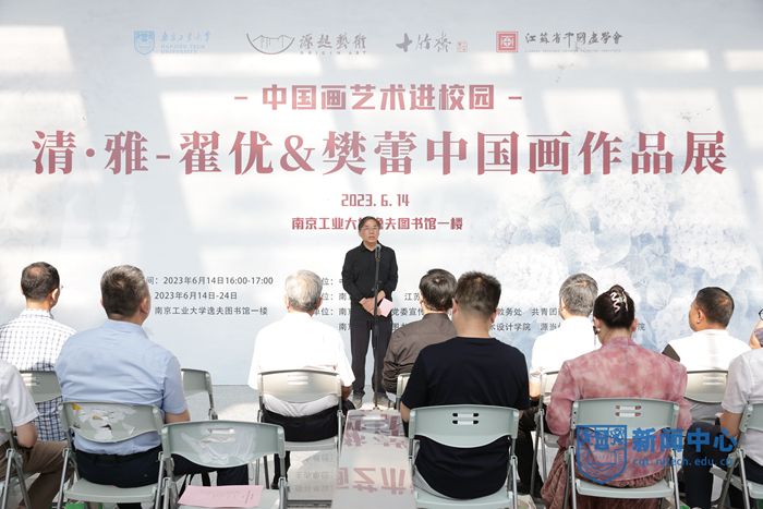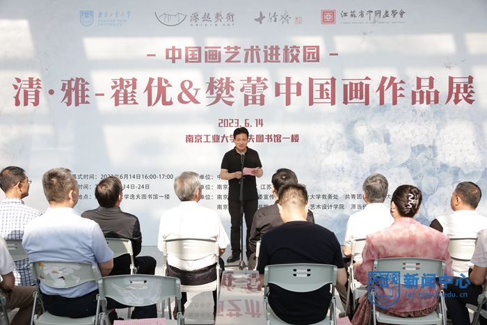 6月14日下午,由万博体育bet 和江苏省中国画学会共同主办的“清·雅—翟优&樊蕾中国画作品展”开幕式在江浦校区逸夫图书馆举办。中国画学会创会副会长、江苏省中国画学会会长高云,原江苏省委巡视组副组长、副厅级巡视专员陈东伟,校党委书记芮鸿岩,原党委书记王德明,江苏省中国画学会理事长王强,校党委常委、副校长陆伟东,中国画学会副秘书长、江苏省中国画学会副会长兼秘书长翟优,中央文史馆书画院特聘研究员、江苏省中国画学会常务理事樊蕾,学校相关部门负责人及师生代表参加活动。活动由校党委常委、党委宣传部部长夏侃主持。