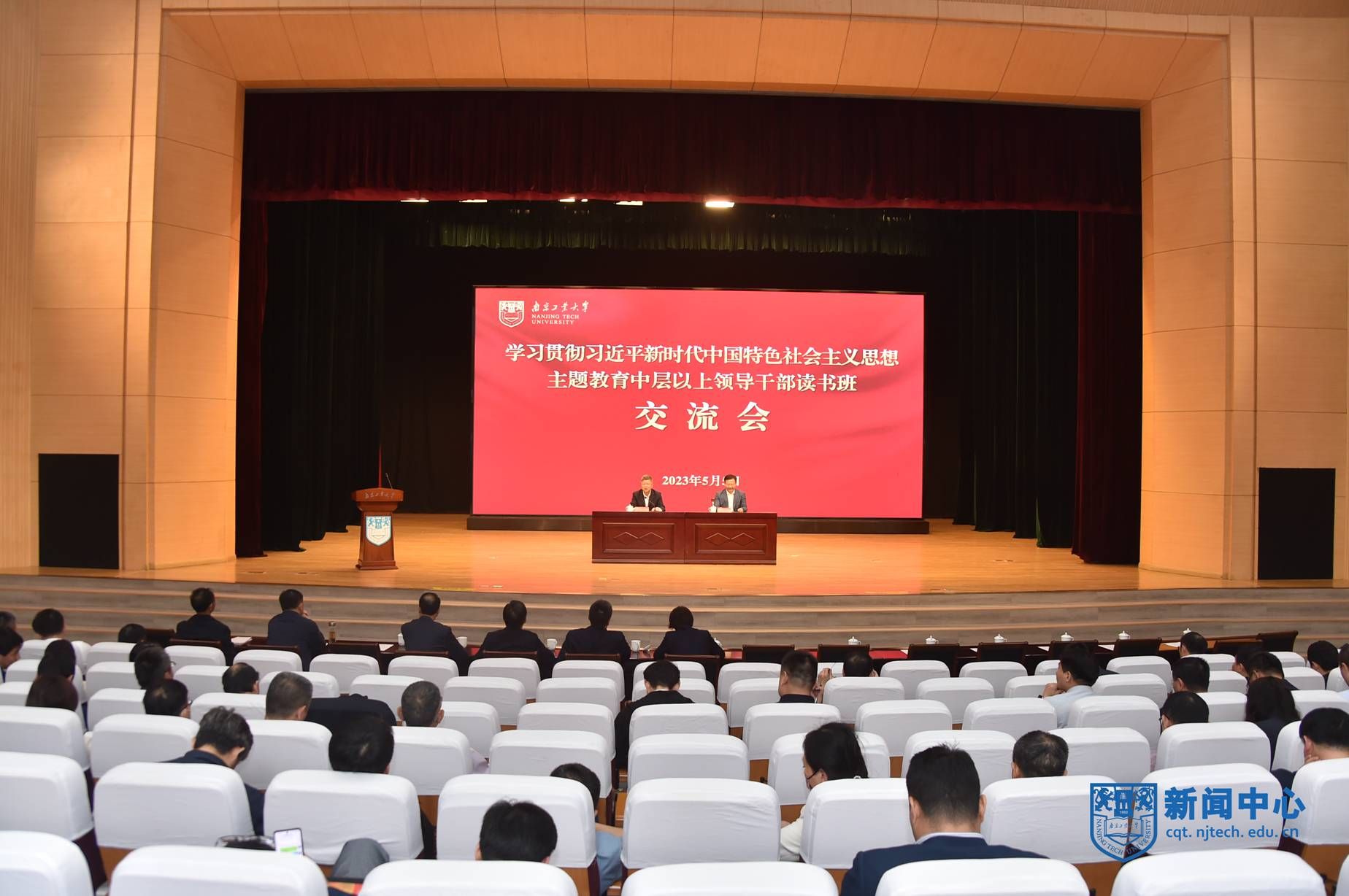 全体在校校领导,中层干部,校院两级理论学习中心组成员等参加交流会。