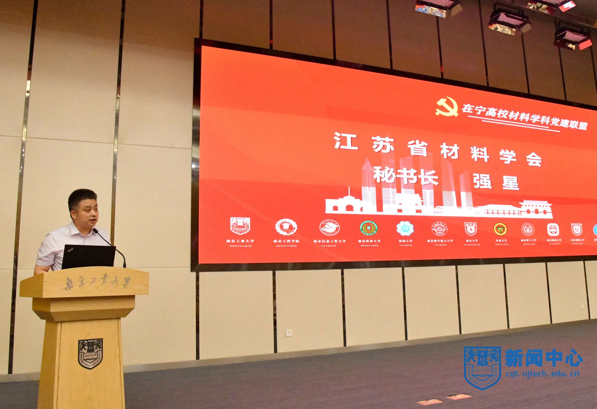 材料科学与工程学院党委书记高树军主持仪式,并介绍了党建联盟成立背景和目的意义。12所在宁高校材料学科相关学院党委书记、院长共同启动党建联盟。党委常委张健、夏侃、黄锁明为12家联盟发起单位授牌。南京大学现代工程与应用科学学院党委书记臧文成、南京航空航天大学材料科学与技术学院党委书记石勇代表联盟发起单位致辞,表示将齐心协力,深化协同合作,夯实联盟基础,发挥集聚优势,打造“理学联学、资源联享、活动联办、队伍联建、工作联促、纪律联抓”的共建体系,推动党建与业务工作互融互促、共同发展。强星秘书长在致辞中对联盟启动表示热烈祝贺,希望各高校通过党建联盟平台强化交流、深化合作,发挥强强联合1+1>2的效应,推动人才共育、项目共研、资源共享,助力材料学科产学研协同发展。