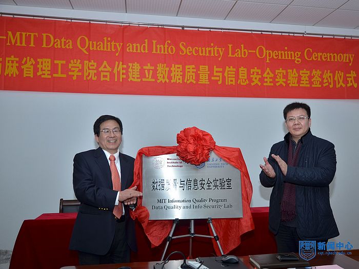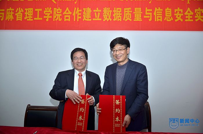 在与会领导、嘉宾的共同见证下,赵顺龙院长与Richard Wang教授签署了合作备忘录。随后,蒋军成副校长与Richard Wang教授共同为万博体育bet -麻省理工学院数据质量与信息安全实验室进行了揭牌。