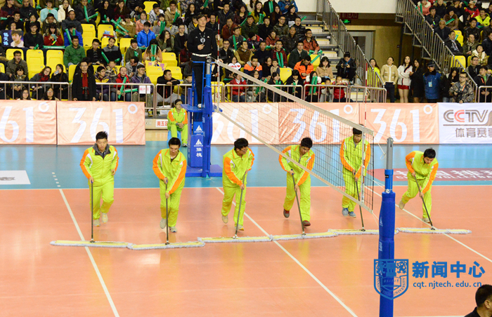 1月18日下午4点,361°男排联赛(2014-2015)半决赛第102场比赛如期举行。江苏正荣男排与山东男排的对决在我校体育馆打响。经过四局激烈的比赛,最终江苏队以1:3憾负山东。四局比分分别是21:25,17:25,25:22,18:25。