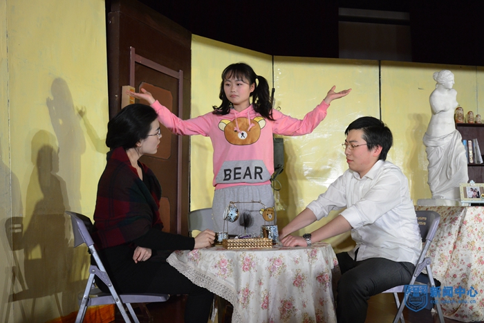 正式演出前,话剧团指导老师许耀华向铁道学院师生介绍了我校话剧团的发展历史、培养模式和主要成绩,向到场的热情观众表达了诚挚的谢意。整场演出由6个节目组成,以话剧团师生原创作品为主。