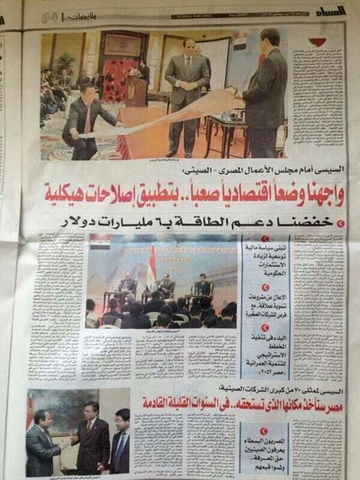 塞西在见面会上表示,埃及十分支持习近平主席提出的“一带一路”倡议,并期待两国间的科研和教育合作成果为之增光添彩。在听取了中国高校和科研、教育机构代表有关建立中埃学院、中埃教育合作现状和进展的发言后,塞西说,中国的科研和教育发展水平令人赞赏,值得埃及研究和学习。中埃两国在教育和培训领域有更广阔的空间等待开拓。埃及期待更多切实的中埃合作计划,将中国的科技成果和职业教育引进埃及,以帮助埃及实现预期的发展目标。
