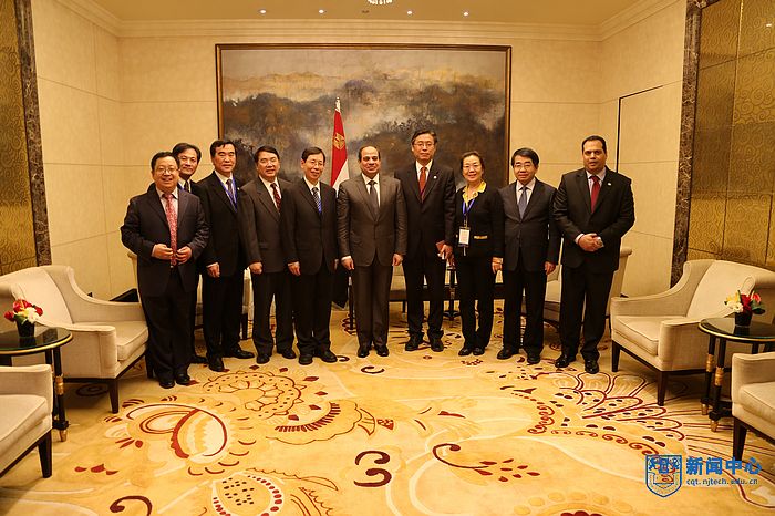 12月23日上午,埃及总统塞西与中国部分高校校长和教育、科研机构代表见面会在中国大饭店隆重举行,我校校长黄维院士应邀出席,包括埃及外交部长萨迈赫•舒克力、埃及国际合作部部长纳智拉•阿和瓦尼在内的七位埃及部长以及中国高校和教育、科研机构代表出席了会议。