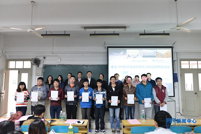 11月11日,泰达—PPG公司奖学金颁奖仪式暨2015年校园招聘宣讲会在厚学109隆重举行。PPG工业公司北亚工业涂料技术总监童宏、亚太区人才吸引及发展人力资源总监张云萍、PPG 涂料张家港工厂人事行政经理耿宁、PPG涂料芜湖工厂人事专员马琼等一行人、材料学院党委副书记考宏涛、材料学院团委书记丁楠、辅导员张丽、化工学院分团委书记王郁超及所有获奖学生、相关专业毕业生参加了本次活动。