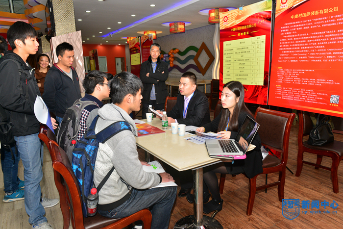 此次招聘会,吸引了合肥水泥研究院、中国新型建材设计研究院、北新集团建材股份有限公司、中建材国际装备有限公司、河南省中联玻璃有限责任公司、四川嘉华企业(集团)股份有限公司、北京新航建材集团有限公司等7家单位来校招聘,提供岗位100余个,涵盖了我校材料、化工、机械、自动化、土木、计算机、给排水、热能、国贸、营销等众多优势学科,可以说与我校专业设置高度契合,再加上“中”字头的品牌形象,对毕业生产生了巨大的吸引力。在两个半小时的招聘过程中,陆续有近千名学生入场查看招聘信息、咨询情况、现场交流,寻找着适合自己的岗位。现场气氛热烈,紧张有序。用人单位代表纷纷表示我校毕业生求职态度积极,综合素质突出,专业基础扎实,沟通协调和适应能力很强,正是企业所急需的人才类型 。