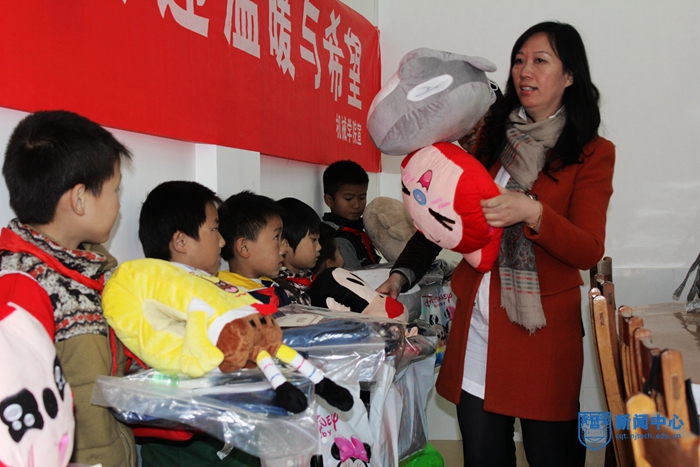 金城小学是一所村级小学在校人数180名,地理位置偏远,在校学生基本都是留守学生,学校的基础设施比较差,全校180名学生,只有一栋教学楼。有这样一群孩子,他们身处贫困,但凭借对学习的憧憬,为自己点燃希望。机械学院的党委书记戴宏老师表示,“这样的爱心助学活动我们已经坚持十年了。青年兴则国家兴,青年强则国家强,爱心助学不仅给他们送上温暖,而且也让小朋友们明白了今天你为人人,明天人人为你的道理。”