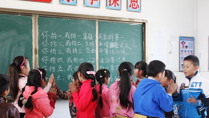 这首朗朗上口的《依法治国拍手歌》不时从安徽金城小学四年级课堂传出。由两名志愿者带领着小学生们学习依法治国拍手歌和社会主义核心价值观拍手歌,教拍手歌的志愿者涂亚君同学介绍说:“拍手歌节奏感强,易被小学生接受,在这种轻松欢快的环境,潜移默化,培养学生从小树立法制思想和依法治国理念,传递正能量。”