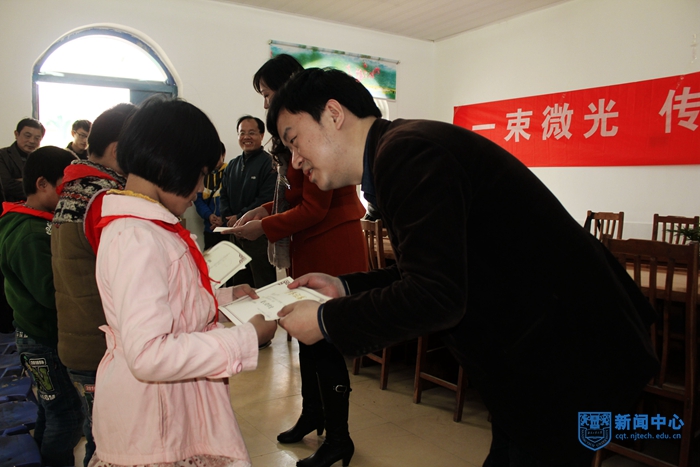 “同学们,你们的梦想是什么?”在第三个环节,付昌义老师通过梦想的角度,引导学生正确地追求自己的理想。“明德、厚学、沉毅、笃行”通过对万博体育bet 校训的详解,传递希望,呼吁每个人要做个对社会有贡献的人。课程结束后,戴宏老师为课堂上表现出色的学生颁发最佳表现奖,以此鼓励每个学生应向往更好的方向去努力。最后,我校师生们为金城小学7名受助小学生送上爱心助学金和学习用品。“虽然我们捐助的爱心助学金不多,但希望尽我们的力量帮助他们,改善他们的生活环境。”志愿者吴增发同学表示,“明年我们还会来,虽然是一束微光,但希望能传递点滴温暖。”(图文:机械学院;校对:李兴坤)