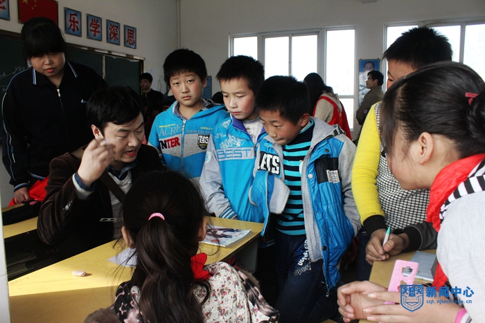在室内课堂上,志愿者采取游戏形式,寓教于乐,通过七巧板的组合拼接比赛,学习收获知识。志愿者刘春晓同学说:“同样的事物,角度不同,答案不同。通过玩七巧板,培养他们动手与思考能力。”最后课堂结束时,由学生主动分享自己的收获。
