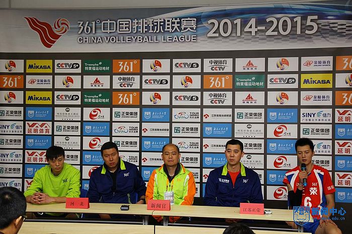11月20日,361°中国排球联赛(2014-2015)第二轮第8场激烈进行,在我校体育馆进行的一场焦点战中,江苏正荣男排主场3-1战胜河北男排,赛后双方主教练和队长对本场比赛进行了简单点评。