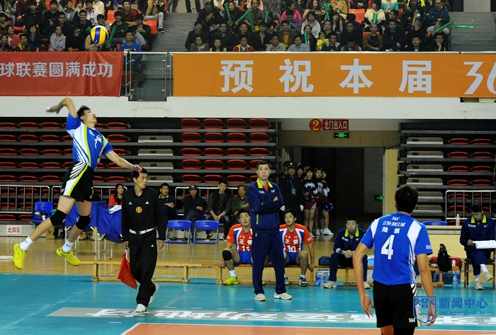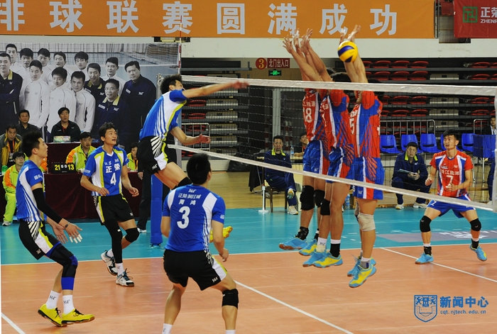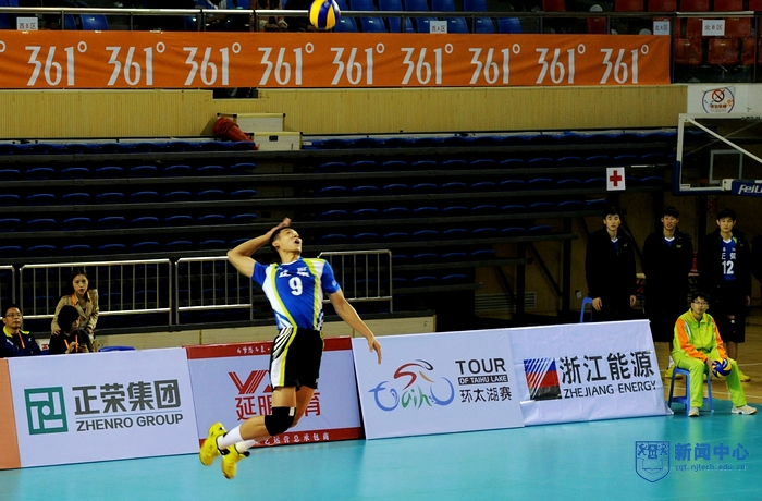 11月23日晚,361°中国男排联赛(2014-2015)第三轮比赛,在我校体育馆进行的江苏正荣与浙江能源男排的比赛中,江苏正荣男排主场3比0战胜对手,三局比分分别为25:17、25:21、25:17。