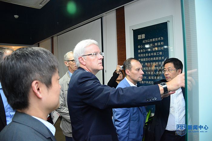 来宾们听取了鼓楼区及我校国家大学科技园的介绍,并先后参观了南京友杰医药科技有限公司、南京高层次人才创业驿站、南京圣诺热管有限公司以及南京科技广场科技公共服务中心。