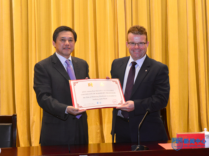 Tony Ryan教授在受聘感言中说,能够成为南工学术殿堂的一员,感到由衷的高兴;非常享受在南工的教学和生活,这里有美丽的校园,有优秀的学子,处处充满着奋发向上的氛围。他表示将继续关注南工的发展和建设,推动谢菲尔德大学与南工的合作向更高层次发展!