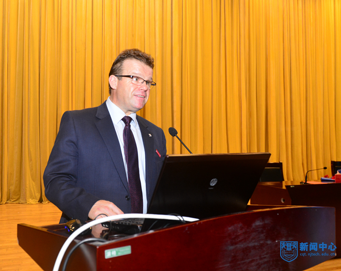 蒋军成副校长介绍了Tony Ryan教授的学术成就并代表南工师生向Tony Ryan教授表示热烈的祝贺和衷心的感谢。他说,我校上下秉承“以人才培养为核心、回归大学教育本源”的办学宗旨,正积极推进各项改革;在向全球化迈进的过程中,世界级学术大师纷纷做客我海外校名师讲堂,为我校“融入全球、多向交流”的发展战略添砖加瓦;Tony Ryan教授作为国际物理化学界的知名学者,亲自为我校与谢菲尔德大学合作项目本科生授课,令人钦佩;Tony Ryan教授是最早致力于高分子纳米技术的研究人员之一,学术成就斐然,其潜心科学的献身精神令人敬仰。今天,Tony Ryan教授受聘我校名誉教授,这样大师级的学者倾力加盟,无疑会给南工的发展助力,为南工开拓更为广阔的空间,为南工添彩!