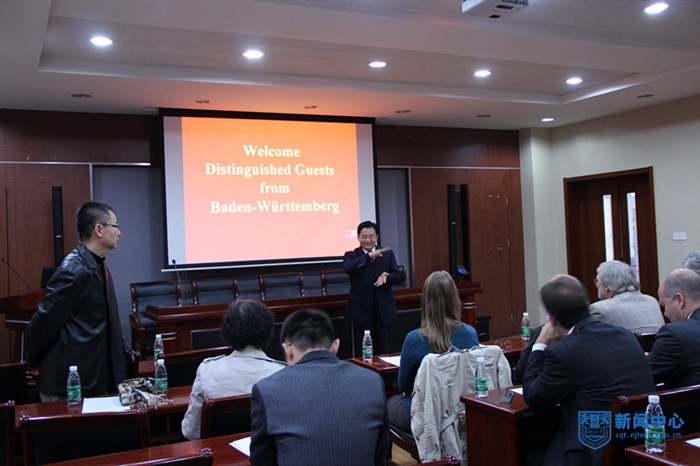 交流活动由药学院书记何冰芳教授主持。生工学院书记缪昌美致欢迎辞。生工学院副院长姜岷教授介绍了生工学科集群在生物制造领域所取得的成就。Schmid教授介绍了德国巴登-符腾堡州地区生物燃料的发展现状。来自乌尔姆大学的Peter Dürre教授介绍了利用产乙酸细菌生产可再生能源的工艺技术。斯图加特大学的Sprenger教授介绍了其在构建能利用甘油的大肠杆菌,并以该菌生产氨基酸等精细化学品等方面的工作经验。Fischer教授介绍了霍恩海姆大学在食品及生物技术等方面的研究和教育情况,热情欢迎我校学生进入霍恩海姆大学进一步深造。Insilico 生物技术公司的专家介绍了该公司自行开发的生物计算软件,并就其在生物技术工业化方面的应用进行了深入浅出的描述。来自卡尔斯鲁厄理工学院的Ochsenreither教授在微生物利用木质纤维素生产平台化合物方面开展了大量的研究工作,他在报告中深入浅出地介绍了相关的科研成就。