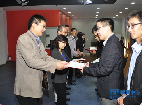 在首先举行的颁奖仪式上,郭万牛处长代表全校师生衷心感谢公司对我校学生的关爱,并肯定了润英联公司与我校合作的无限潜力。他希望获得奖学金的各位同学要心怀感恩,在校期间以更加优异的成绩向关心、帮助我们的企业汇报,毕业后为我国的化工事业的发展做出应有的贡献。