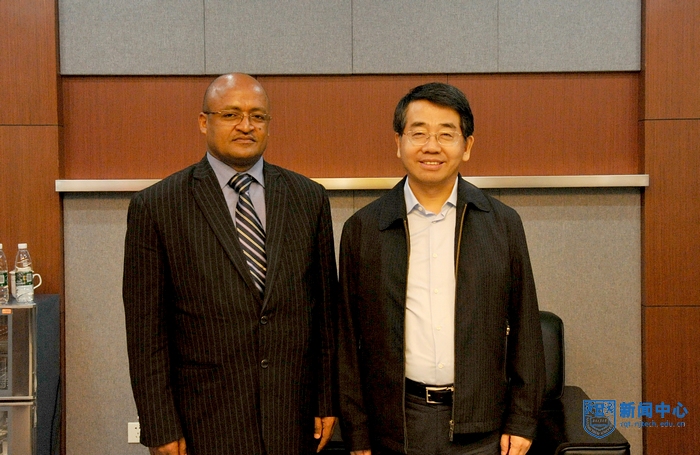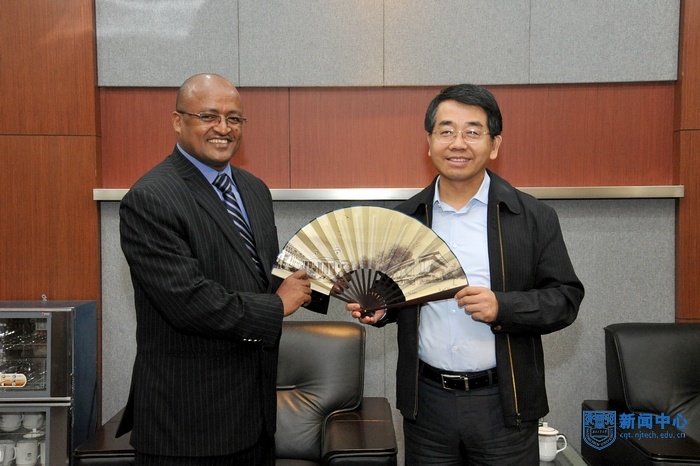 Mebratu教授向黄维校长介绍了访问参观我校留下的深刻印象,对我校的优良设施与美丽校园给予高度评价,并对我校在招收米赞-特比大学的教师来我校攻读博士学位方面给予的大力帮助与支持表示衷心的谢意。黄校长对嘉宾的到来表示热烈欢迎,畅谈两校进一步加强合作的设想,希望两校在现有基础上进一步扩展、提升合作层次与水平,实现兄弟合作关系。