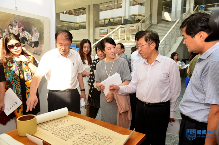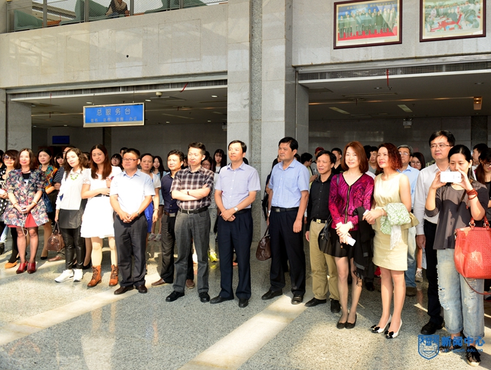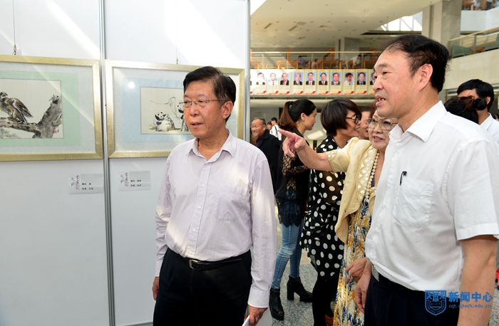 校党委书记王德明教授,校党委副书记、纪委书记朱跃钊教授,副校长刘伟庆教授,省教育科技工会高校部高顺岭部长,研墨书画社朱蕾女士,周茜女士及学校职能部门领导,师生代表,书画爱好者共一百多人出席。