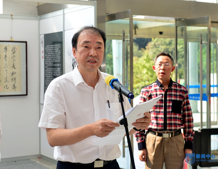 10月10日下午,在丹桂飘香,层林尽染的江浦校区图书馆,校工会书画协会与研墨书画社联合举办的“金秋书画联展”隆重开幕。