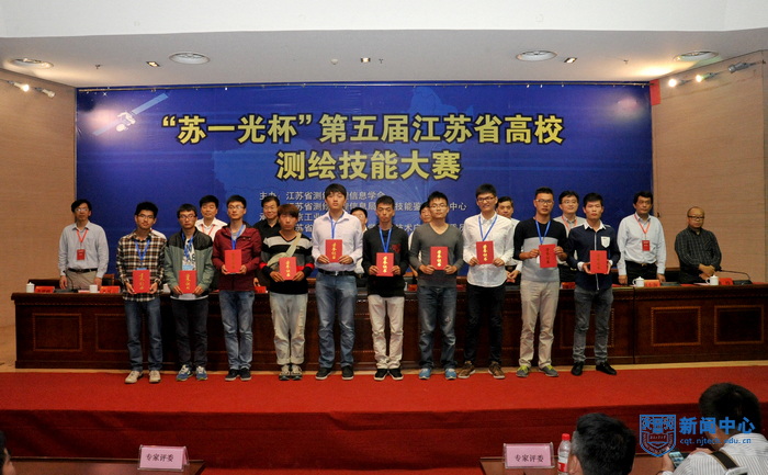 经过两天紧张激烈的角逐,大赛组委会、评委会按照公开、公平、公正的要求,规范评审条件,严格评选程序,评选出水准测量一、二、三等奖、导线测量一、二、三等奖、个人比赛一、二、三等奖、团体一、二、三等奖和优秀指导教师等各类奖项。江苏省测绘地理信息学会袁桂生秘书长宣布了获奖名单,在主席台就座的领导和嘉宾为获奖选手和获奖集体颁奖。我校测绘学院参赛队分别获得团体、导线测量、水准测量一等奖;韩亮、邵晓明、许亚军3位同学获得个人比赛一等奖。