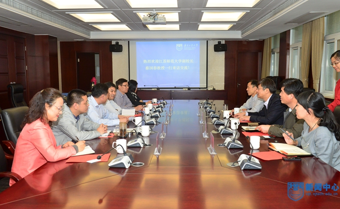 10月14日下午,江苏师范大学副校长蔡国春教授一行来我校进行专题调研。副校长乔旭教授在江浦校区行政楼104会议室热情接待了来访嘉宾,相关职能部门负责人参加了交流座谈。