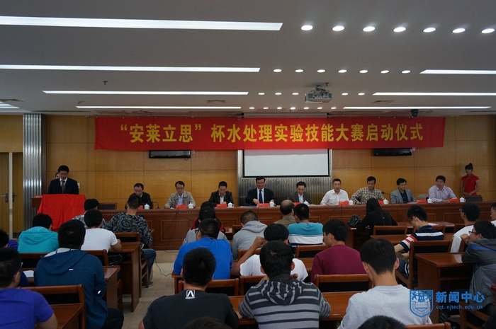 10月16日下午,万博体育bet “安莱立思”杯水处理实验技能大赛启动仪式在江浦校区逸夫图书馆五楼报告厅隆重举行。出席本次启动仪式的有副校长崔益虎教授、安莱立思仪器科技公司总经理唐璘、安莱立思仪器科技公司副总经理徐琨、学生处处长郭万牛、资产处处长蔡海彪、校团委书记刘大卫、教务处副处长陈新民、理学院院长沈临江、理学院党委书记杨文忠等。仪式由理学院党委副书记马明辉主持。各学院的参赛选手参加了本次仪式。
