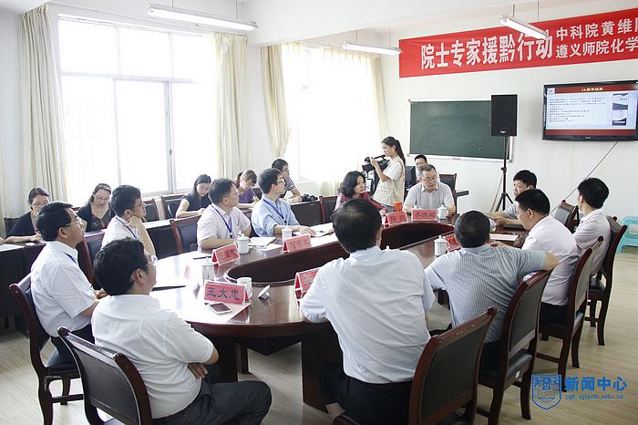 8月28日上午,中国科学院院士、校长黄维与遵义师范学院签订合作协议并受聘为该校特聘教授。在遵义师范学院校长王大忠等的全程陪同下,深入该校化学化工学院与师生座谈,调研指导。