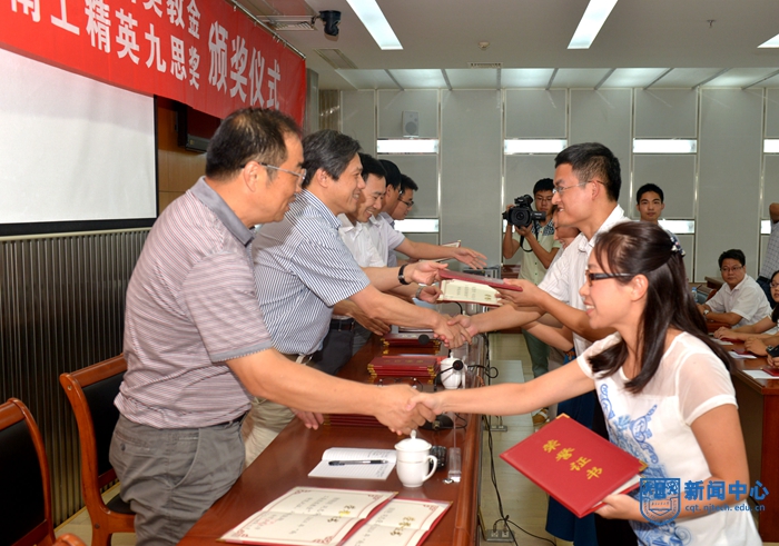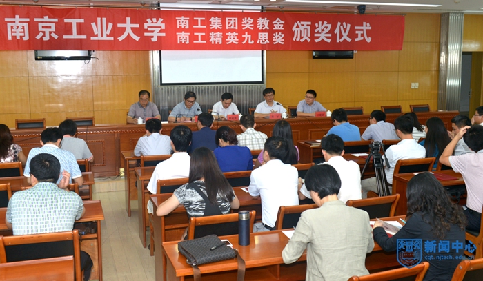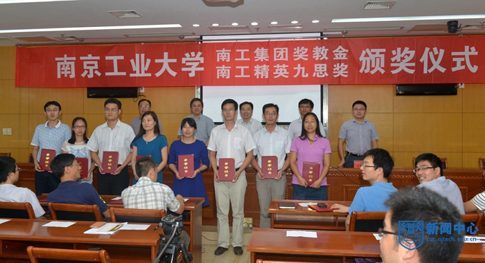 金色九月,丹桂飘香, 9月11日下午,学校在江浦校区逸夫图书馆5楼报告厅隆重举行了“南工精英九思奖”、“南工集团奖教金”颁奖仪式。副校长崔益虎教授、副校长巩建鸣教授、校资产经营公司韩连生总经理、南京九思高科技有限公司丁晓斌总经理出席颁奖仪式,仪式由万博官方app下载 部常务副部长董军教授主持。