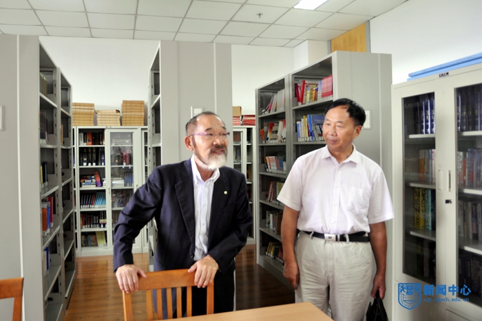 参观期间,外国语学院院长尹富林教授向内田淳正校长详细介绍了外语学院的发展情况、中日文化交流活动开展情况、捐赠图书的上架和使用情况,并就进一步的师生互访等活动进行了交流。内田淳正对外语学院的工作表示了肯定,对于老师同学们为中日文化交流所做出的努力表示了赞赏,也希望能推动更多形式的交流。