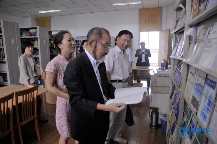 9月9日,三重大学校长内田淳正教授、企划总务部总务科长上川正石来我校访问,与校长黄维院士、副校长蒋军成教授、副校长巩建鸣教授等领导进行会晤,进一步签订三重大学和我校的合作协议书,并为中日科技文化合作中心揭牌。校际访问活动结束后,内田淳正校长专程来到外国语学院,参观并指导中日科技文化合作中心的开展工作,同时参观图书馆外国语学院分馆的日语图书使用情况。外国语学院院长尹富林教授、党委副书记佴康等学院领导及日语系老师陪同参观。